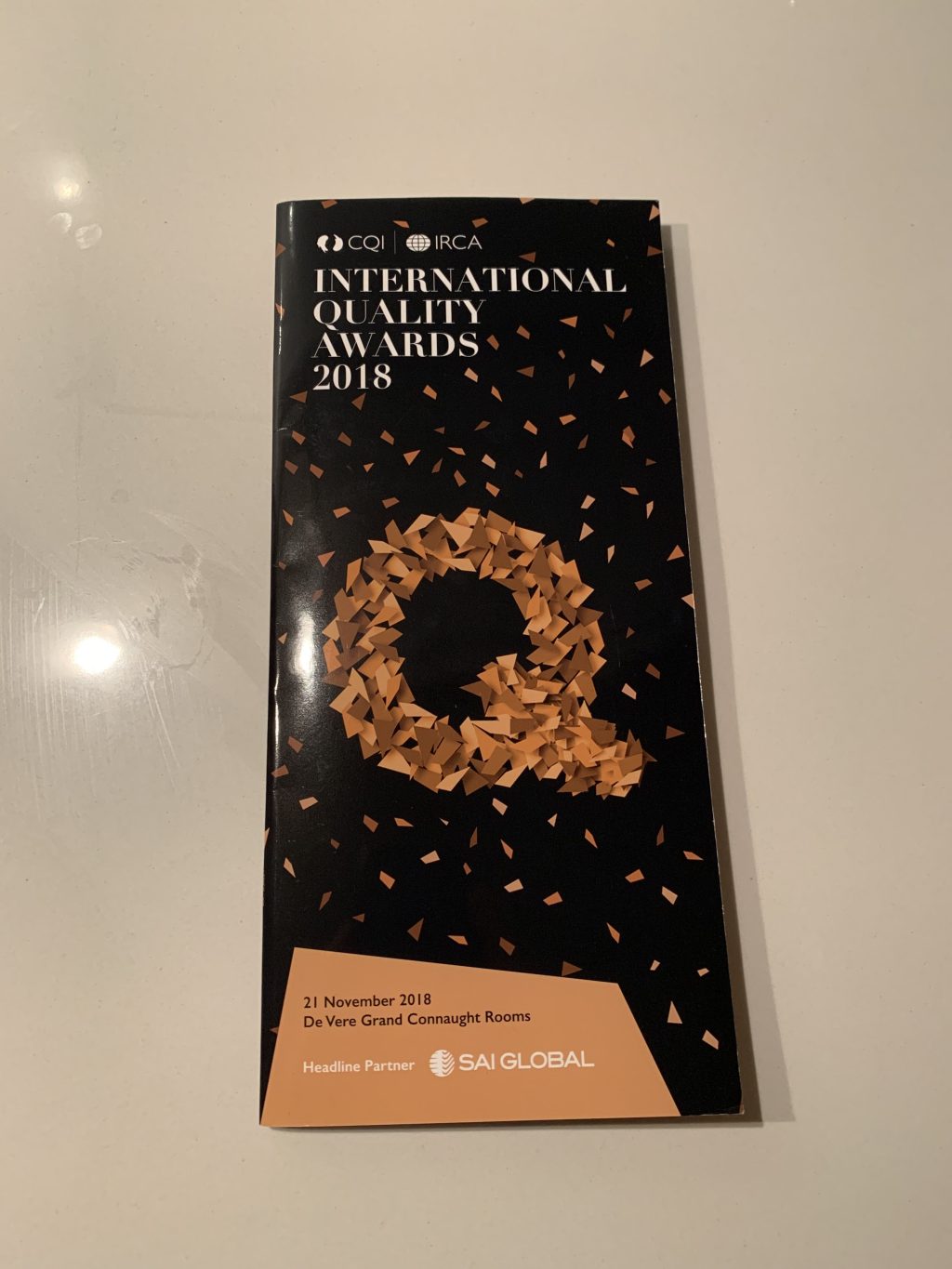 On Nov 21st, 2018, the Chartered Quality Institute held its second international Quality Awards ceremony at the Connaught Rooms in Central London. The event was heaving with quality professionals from all over the world.