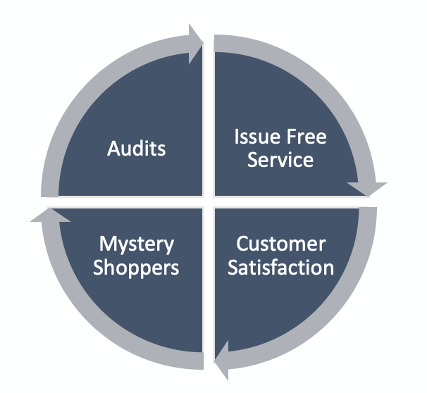 These measures are audits, issues, customer’s direct input and mystery shoppers. Figure 3.0 illustrates these four measures.