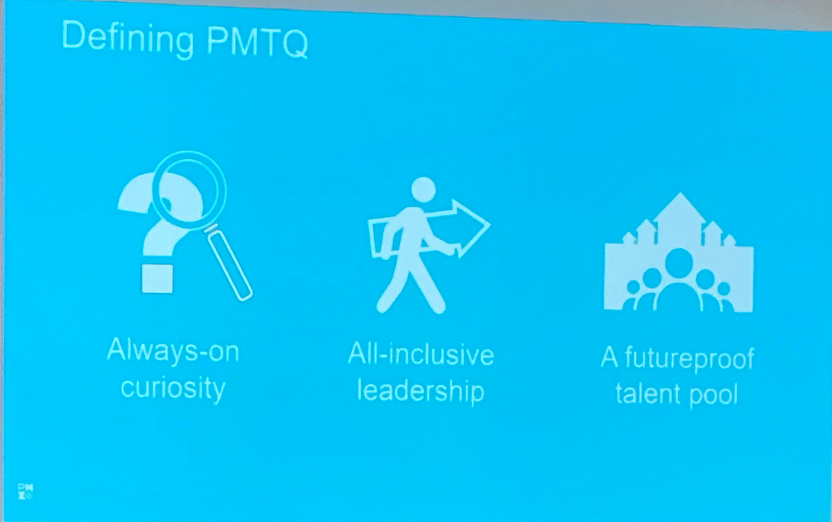 The session started by highlighted that PMI existed for 50 years and shared the top 50 projects that has taken place in those 50 years. By 2027, there will be a need to employee 88 million indoviduals in project management oriented roles. This by itself consitutes of the Project Economy. With a huge amount of waste resulting from this economy (in the US $0.11 is watsed from each $1), the need to align the project’s sponsor, strategy and scope is of vital imrotance for success. This introduces the PMTQ: Project Management Technology Quotient. Organisations should start assessing their PMTQ just like they hire based on IQ and/or Emotional Inteligance. Project Professionals who are always curious, drive an all inclusive leaderhsip style and develop a future proof talent pool have a higher PMTQ. That is why from today, we should help organisation be change-ready by putting technology front and centre, build digital fluency across the enterprise, reimagine career journeys and think talent triangle.