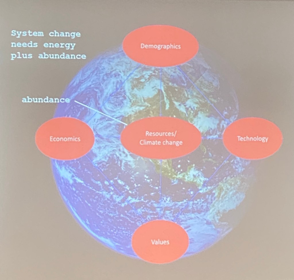 With that in mind, Andrew went on to explain how the 5 traditional pillars of looking into strategy will no longer stand on their own. The 5 traditional pillars are demographics, economics, technology, values and resources. Organisations should now consider energy and abundance, where energy is key contributor to the resources pillar- especially with the topic of climate change, and abundance being another key contributor to the pillar of values with how our values keep on evolving (image referenced above system change pillars).