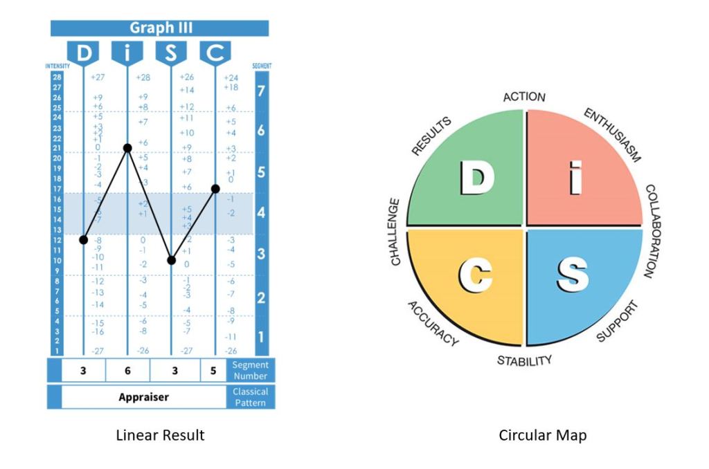 🔹In 2000, the research was studied further and the personal profile assessment moved from a linear result into its present the outcome on a circle map as shown in the figure on the right.