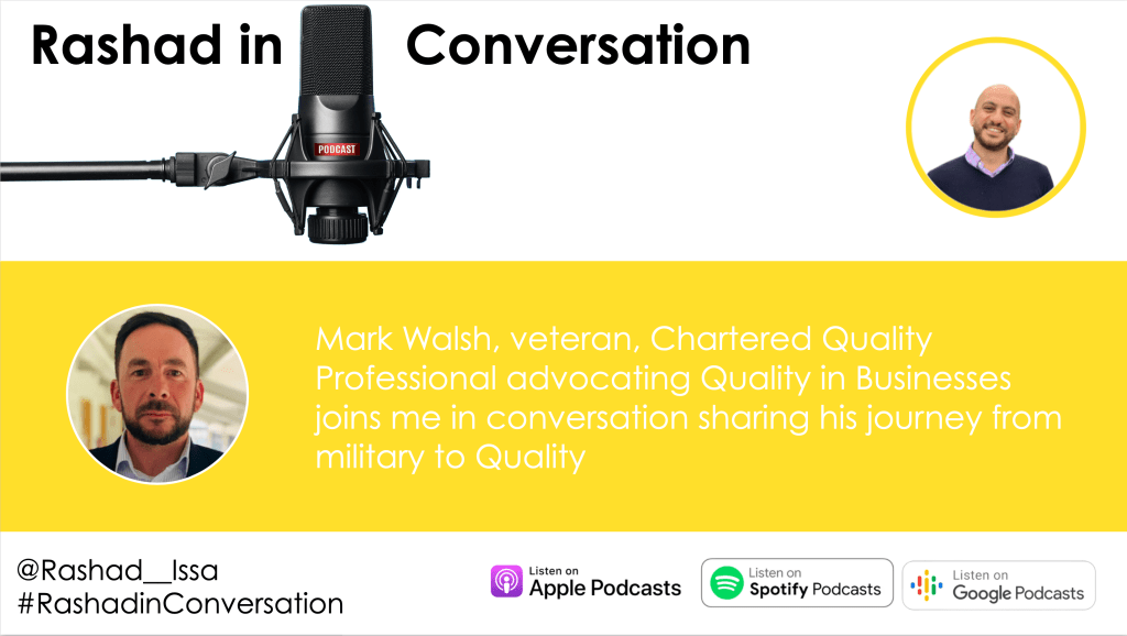 Mark Walsh is a veteran, a Chartered Quality Professional and member of the Chartered Quality Institute who advocates for Quality in Businesses and has since set up his own business.